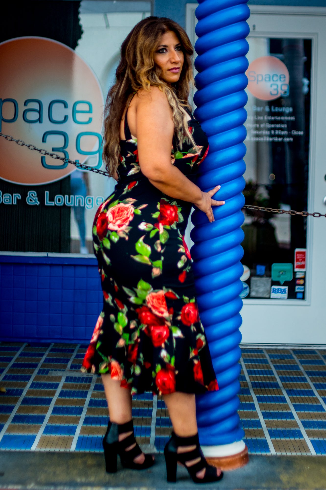 This stunning dress features a semi-stretchy fabric, strap, flare hemline, and finish with back zipper closure.