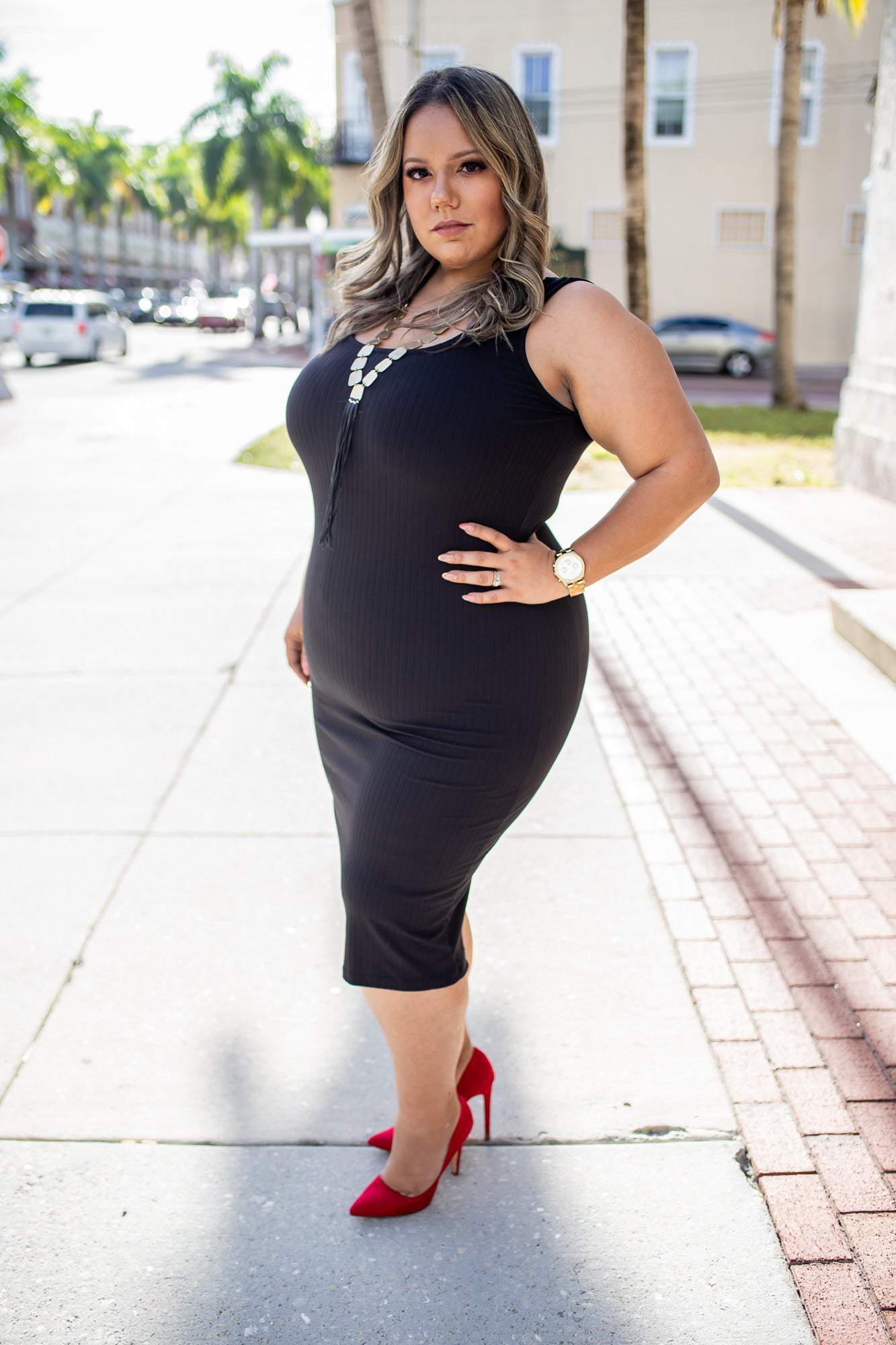 Sometimes, simplicity is the sexiest. This dress is sleeveless, midi design, and has a scoop neckline.
