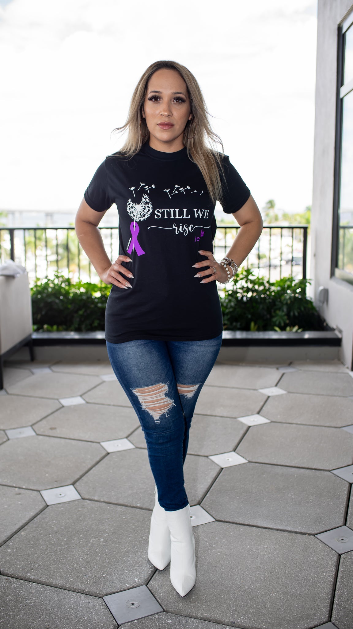This Exclusive JEM Design is a collaboration between Marissa Gonzalez and Designer Ylondra Marrero. The shirt represents unity and empowerment. We all face struggles, often silent battles, and this line is our connection to a cause, the people affected by it, and those who love and support them! It’s a way to say I am not alone & STILL WE RISE!