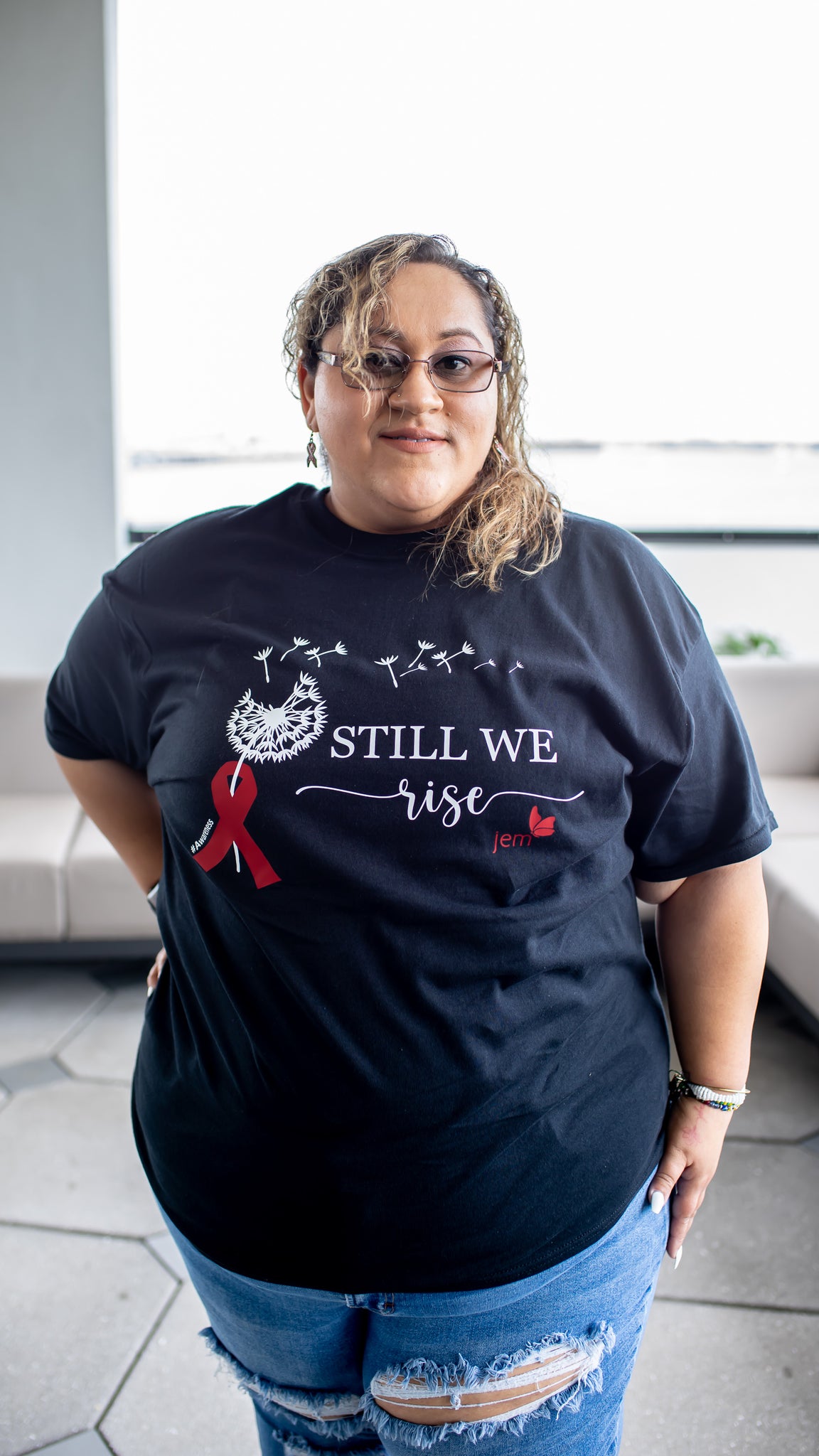 This Exclusive JEM Design is a collaboration between Marissa Gonzalez and Designer Ylondra Marrero. The shirt represents unity and empowerment. We all face struggles, often silent battles, and this line is our connection to a cause, the people affected by it, and those who love and support them! It’s a way to say I am not alone & STILL WE RISE!